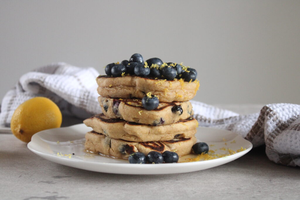 1. In a large bowl mix together the oat flour, baking powder, lemon zest, and salt