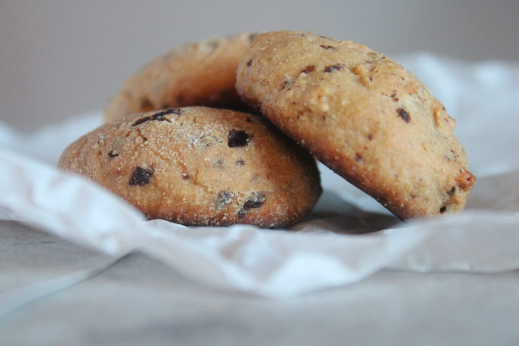 - Mix the flour, peanut butter, and agave syrup till a dough is formed and then gently fold in the chocolate chips